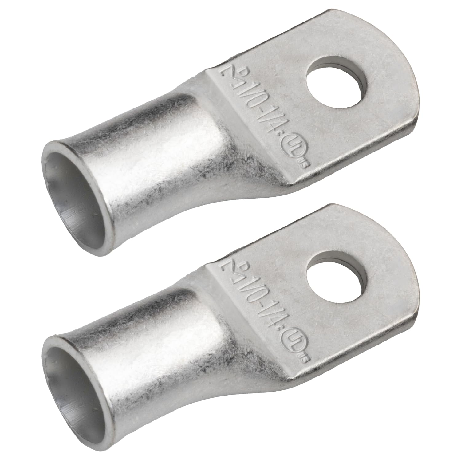 1/0 AWG (0 Gauge) 1/4" Stud, Tinned Copper Battery Cable Ends, Wire Lugs, Marine Grade, MD1014P