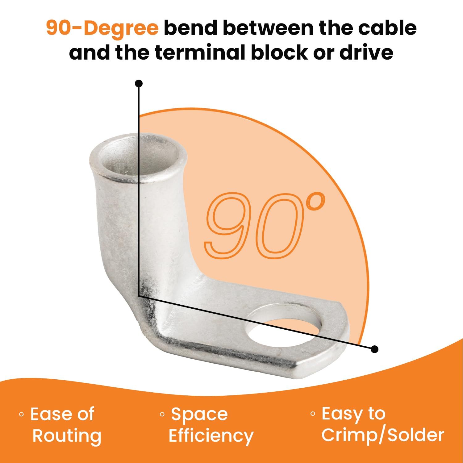 Secure and Space-Saving Connections: Selterm 1/0 AWG ring terminal connectors ensure strong and reliable battery connections while their heavy-duty 90 Degree bent design allows for effortless cable routing in tight spaces, preventing power loss and ensuring a neat, professional installation.