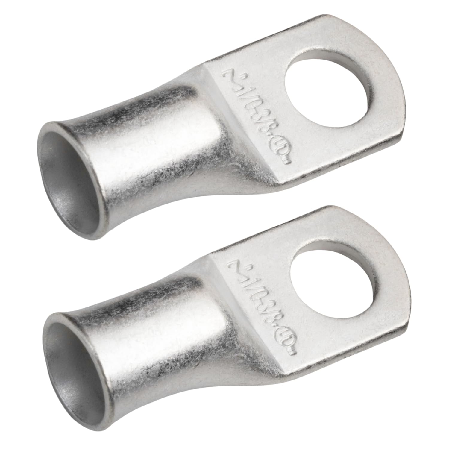 1/0 AWG (0 Gauge) 3/8" Stud, (Wide Pad) Tinned Copper Battery Cable Ends, Wire Lugs, Marine Grade, MD1038PW