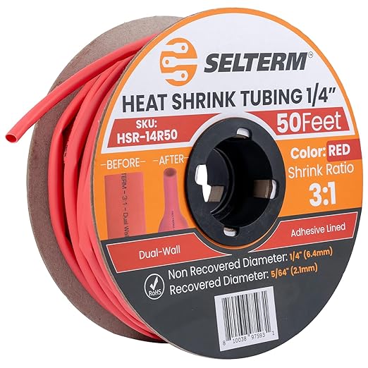 SELTERM 1/4" Red [50 Feet] Marine Grade Heat Shrink Tubing Roll, 3:1 Ratio Dual Wall Adhesive Lined Waterproof Heat Shrink Wrap Tube, for Battery Cable Lugs Wire Terminals ConnectorsHSR-14R50