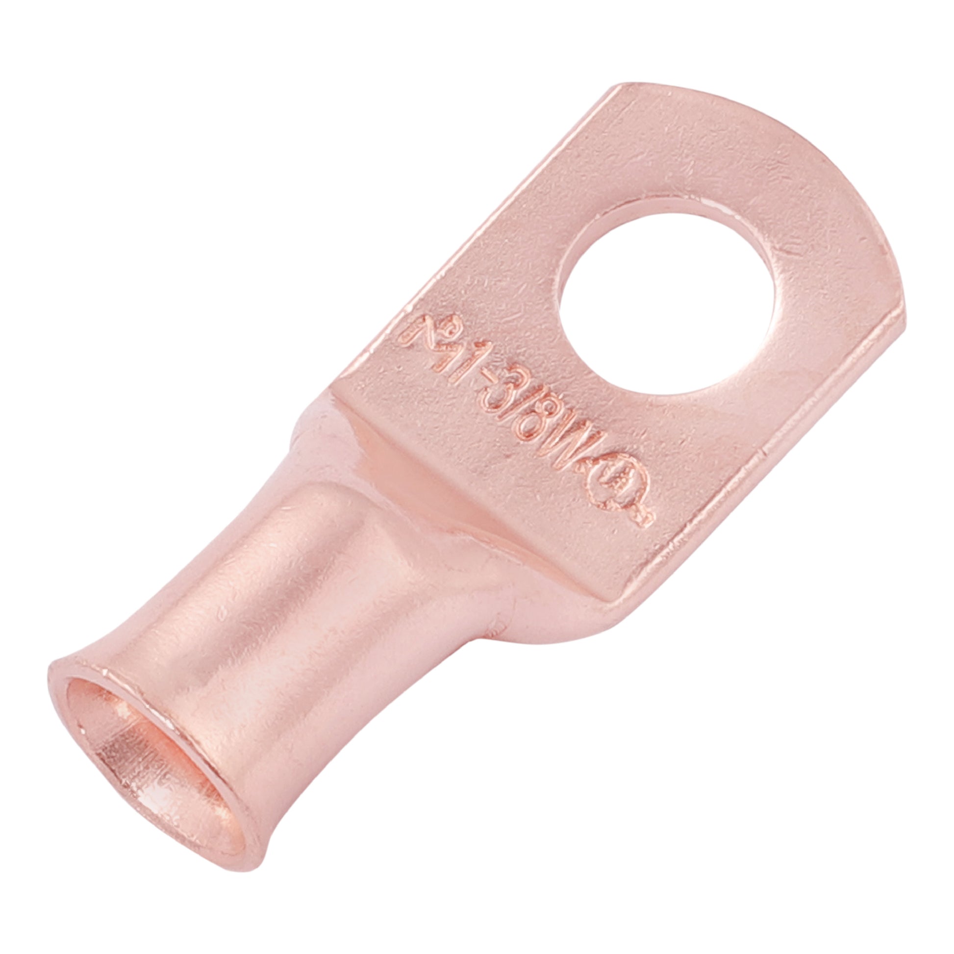 1AWG (1 Gauge) 3/8" Stud, (Wide Pad) Bare Copper Battery Cable Ends, Wire Lugs, Heavy Duty, MD0138UW