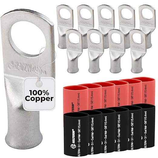 2 AWG (2 Gauge) 1/2" Stud, Tinned Copper Battery Cable Ends, Wire Lugs, Marine Grade, MD0212PW