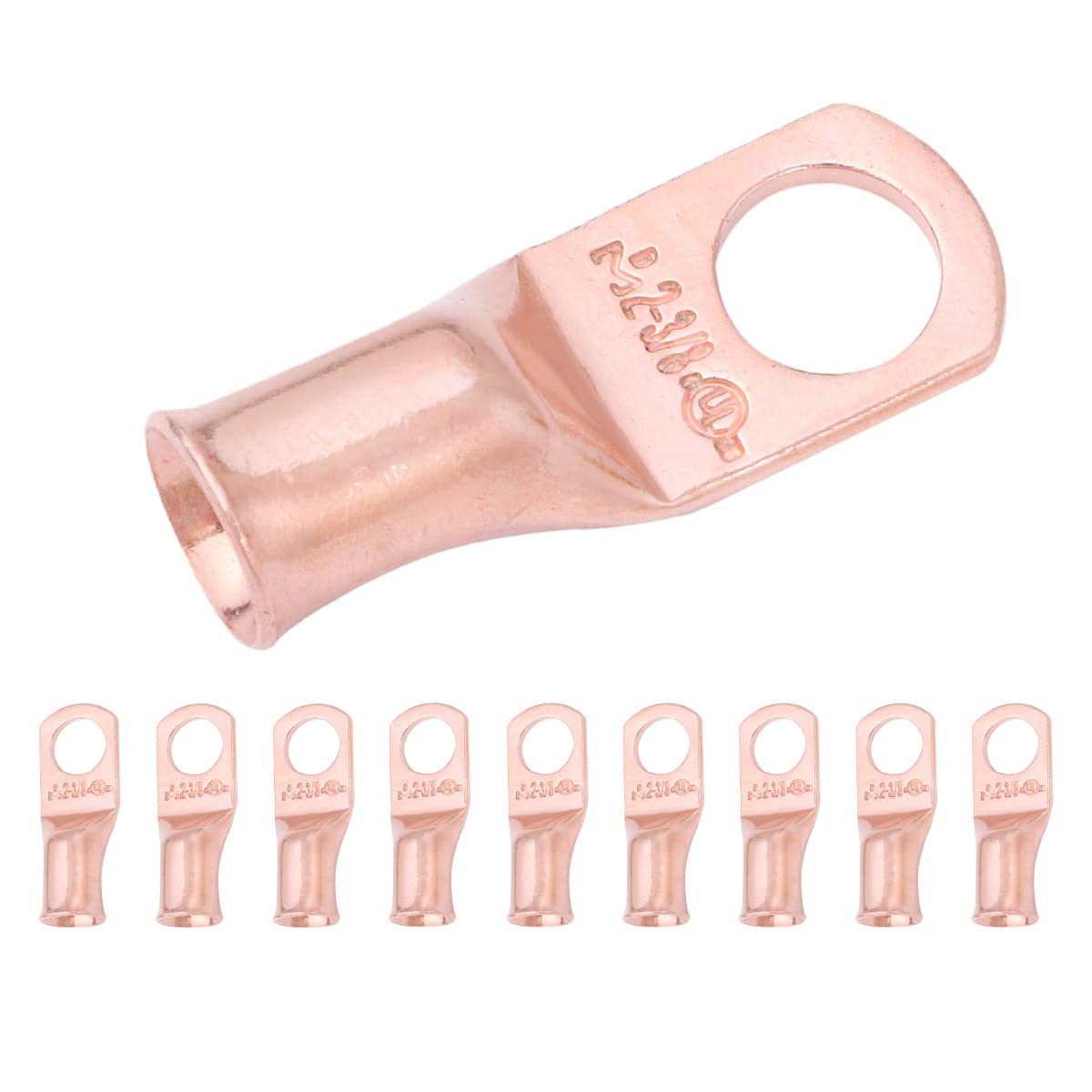 2 AWG (2 Gauge) 3/8" Stud, Bare Copper Battery Cable Ends, Wire Lugs, Heavy Duty, MD0238U