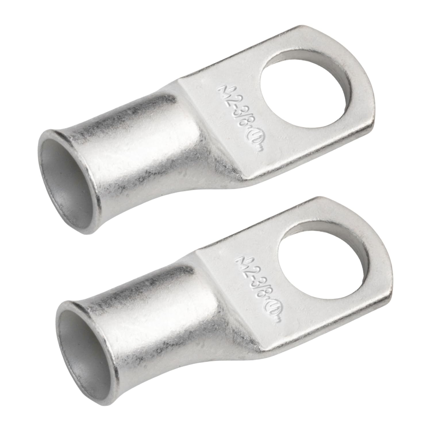 2 AWG (2 Gauge) 3/8" Stud, Tinned Copper Battery Cable Ends, Wire Lugs, Marine Grade, MD0238P