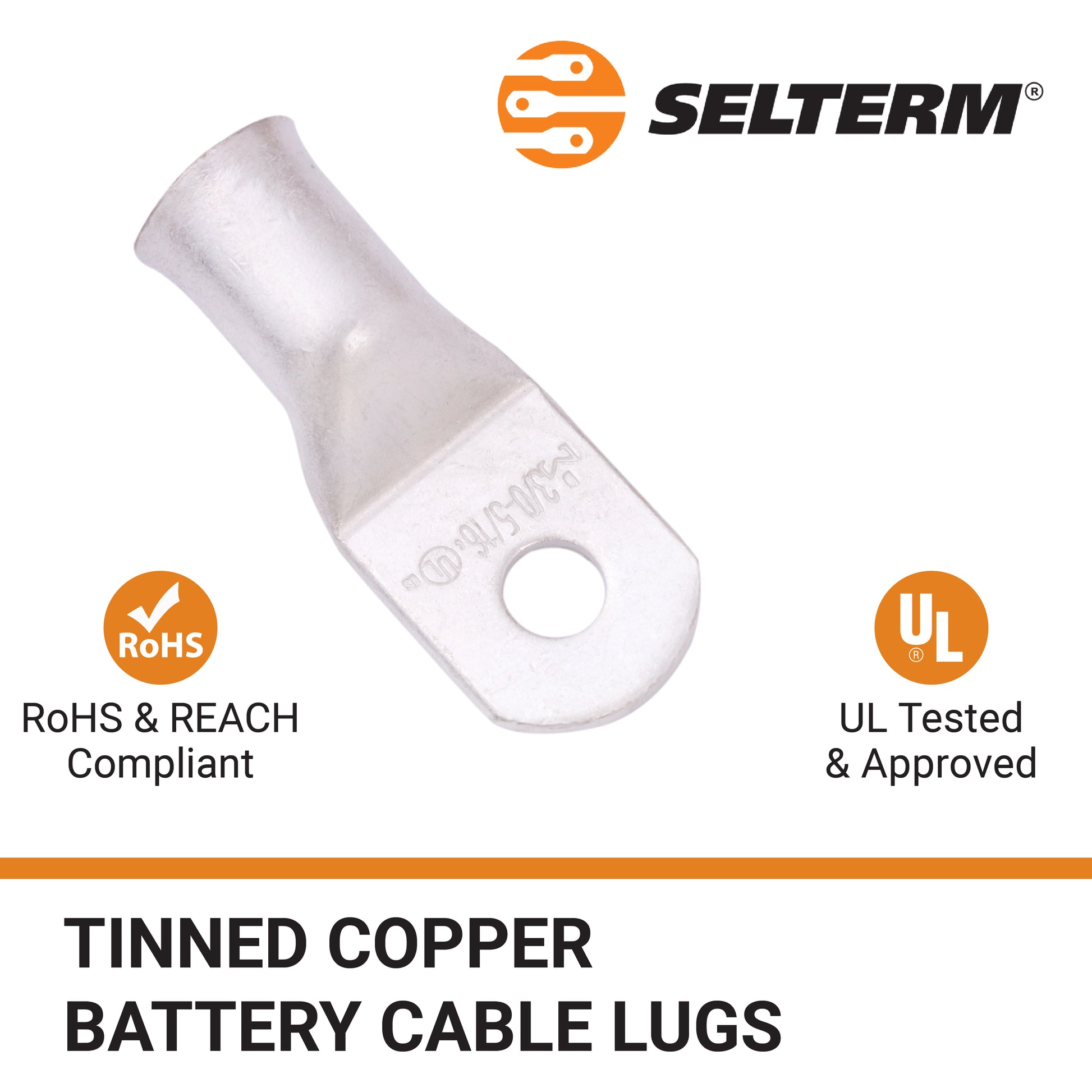 SELTERM Marine Grade Wire Lugs are made from 99.9% pure annealed tinned copper, providing a high degree of conductivity for maximum current flow. This particular variant is generally suitable for use with 3/0 or 000 Gauge Battery Cable & 5/16" (M8) Stud.