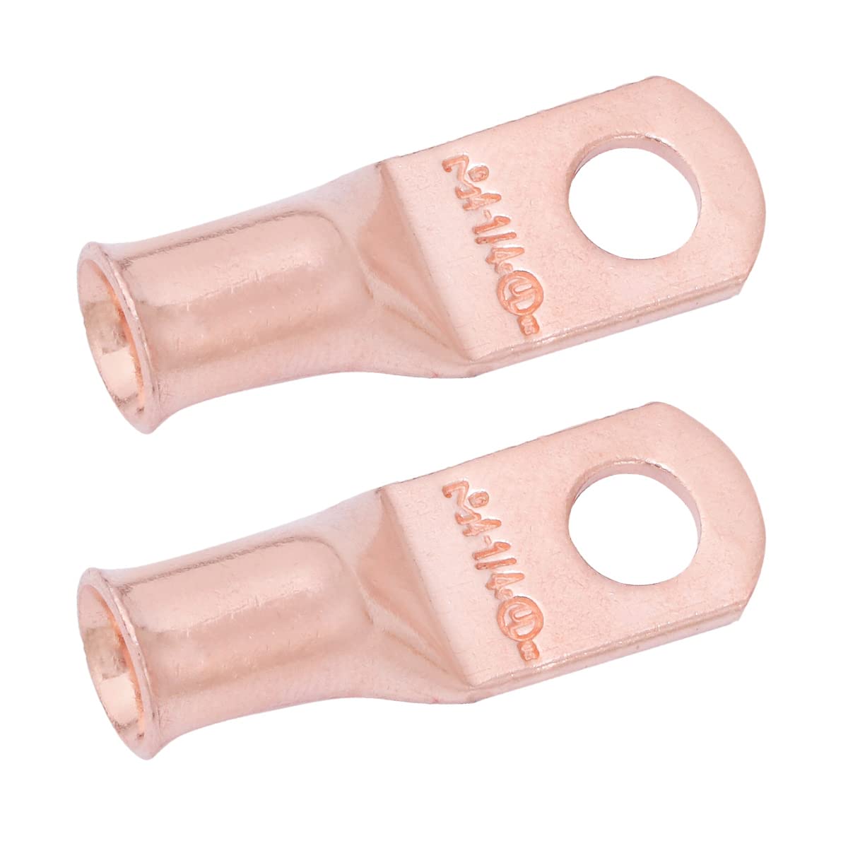 4 AWG (4 Gauge) 1/4" Stud, Bare Copper Battery Cable Ends, Wire Lugs, Heavy Duty, MD0414U