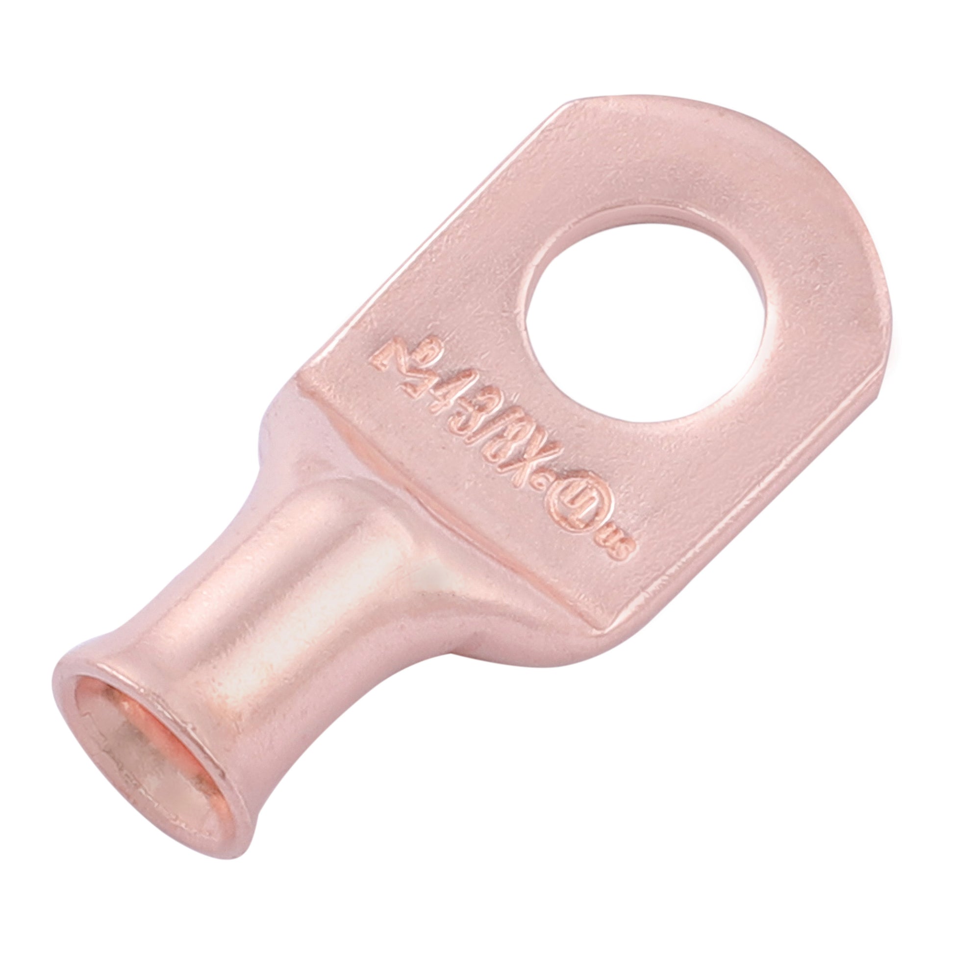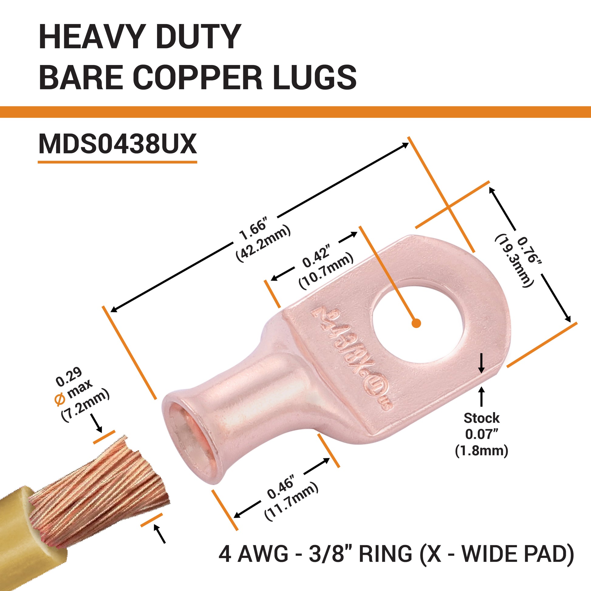 4 AWG (4 Gauge) 3/8" Stud, (X-Wide Pad) Bare Copper Battery Cable Ends, Wire Lugs, Heavy Duty, MD0438UX