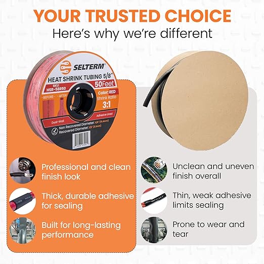 ![SELTERM 5/8" Red [50 Feet] Marine Grade Heat Shrink Tubing Roll, 3:1 Ratio Dual Wall Adhesive Lined Waterproof Heat Shrink Wrap Tube, for Battery Cable Lugs Wire Terminals Connectors](http://selterm.com/cdn/shop/files/81uwQyonISL._SX522_43fd174d-2f55-4229-b61e-0a387133581d.jpg?v=1735110844&width=1445)