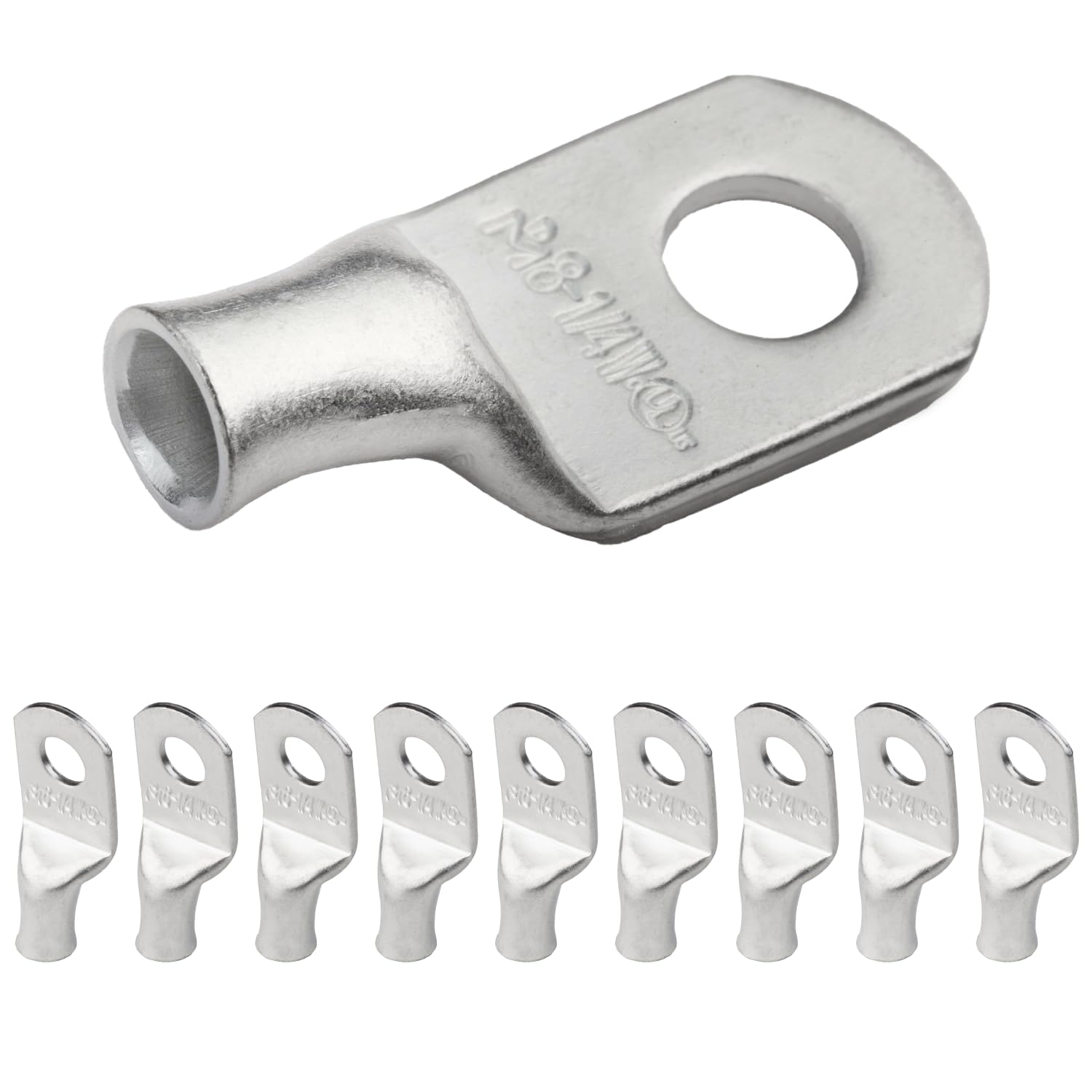 8 AWG (8 Gauge) 1/4" Stud, (Wide Pad) Tinned Copper Battery Cable Ends And  Wire Lugs